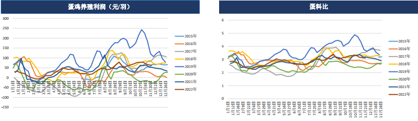 在飼料價格大趨勢下跌的時候,雞蛋價格也呈現出較為明顯的下滑,而成本較為堅挺時,雞蛋價格也較為明顯。