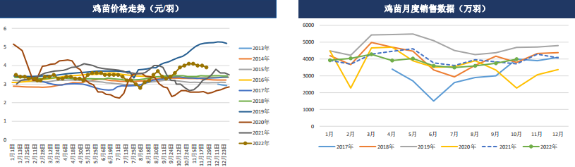 商品代雞苗價格以穩為主,均價為3.44元/羽,環比持平,主流報價3.40-3.50元/羽,個別高價3.70-3.80元/羽,個別低價3.20元/羽。目前養殖單位整體補欄積極性依舊不高,部分養殖單位逢低少量補青年雞,對雞苗的直接需求欠佳,且個別地區因運輸受阻,雞苗銷量較前期減少,供需僵持局面難以改變。目前種雞企業訂單多數排至12月下旬,個別大廠排至2023年1月中上旬,種蛋利用率多在60%-70%,個別在50%左右。