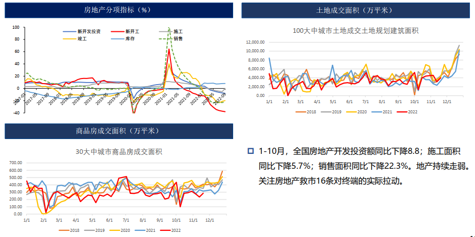 月初隨著國內疫情管控放松,宏觀刺激政策密集出臺,我們認為宏觀情緒轉暖,偏強震蕩。中下旬后,提示關注疫情放松現實預期差。