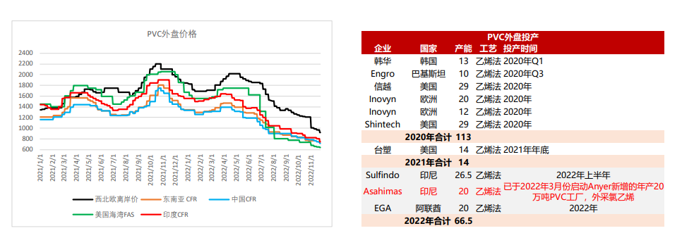 11月21日,中國臺灣臺塑公布12月預售報價,CIF印度跌90美元/噸在750美元/噸,CFR中國跌55美元/噸在735美元/噸;CFR東南亞跌50美元/噸至730美元/噸。