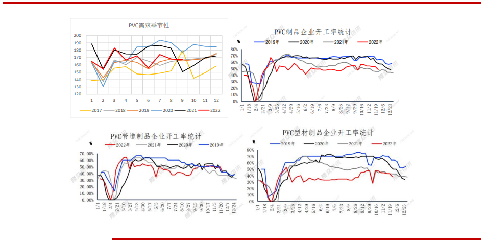 上周下游制品企業開工率在48.60%,環比減少4.44%,同比增加2.95%。型材開機率在38.13%,環比減少5.00%,同比減少4.38%。
