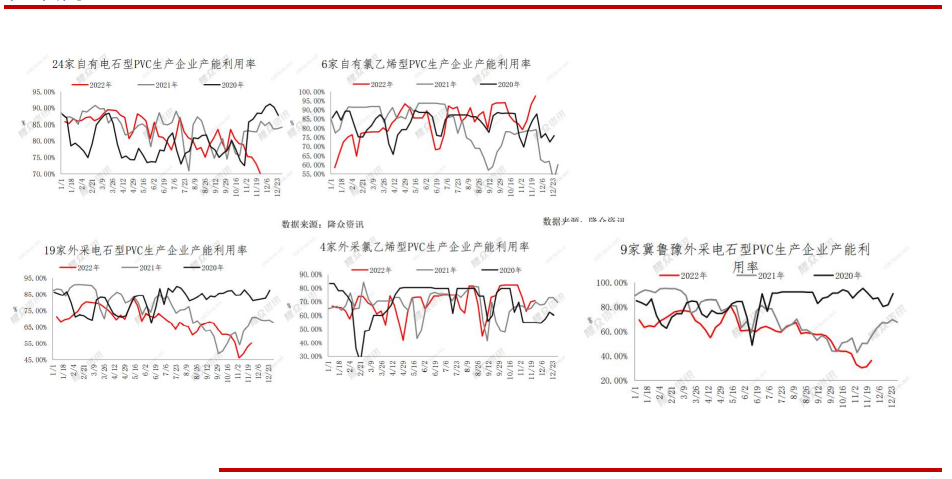 上周PVC上游小幅累庫0.36萬噸至45.6萬噸,社會庫存去庫1.8萬噸至26.95萬噸,其中華東去庫1.79萬噸,華南去庫0.01萬噸。PVC整體去庫,社會庫存同比增77%,上游庫存同比增184%。