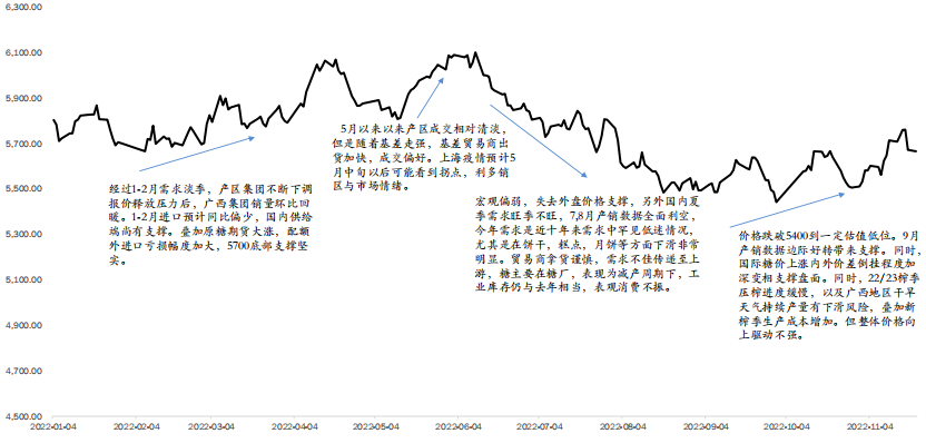 國內方面:國內11月下旬或開榨,今年甘蔗產區偏干旱,據調研顯示,廣西地區糖產量下滑約50-70萬噸,總體22/23榨季糖產量相比去年同期下滑20-30萬噸水平,在一定程度或支撐市場,但是當下疫情反復,需求端仍無趨勢性好轉,陳糖庫存仍有一定壓力,預計價格上行也有難度。