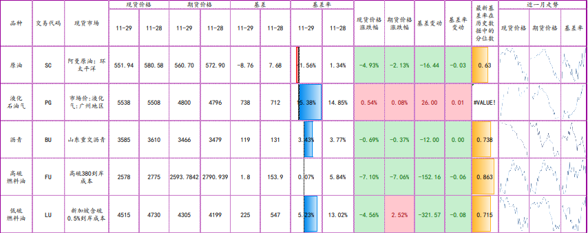 周二油價小幅反彈,漲幅收窄,其中WTI1月合約收盤上漲0.96美元至78.20美元/桶,漲幅為1.24%。布倫特1月合約收盤下跌0.16美元至83.03美元/桶,跌幅為0.19%。SC2301以568.4元/桶收盤,上漲4.5元,漲幅為0.80%。由于擔憂OPEC+不會在12月4日的下次會議上調整其產量計劃,也即維持現有減產200萬桶/日的計劃,油價承壓。七國集團和歐盟的外交官一直在討論將俄羅斯石油的價格上限設定在每桶65-70美元之間,目的是在不擾亂全球石油市場的情況下限制俄羅斯的石油收入,但仍未能達成協議。當前市場關注亞洲需求恢復的節奏,以及周末的歐佩克+會議,市場仍維持謹慎樂觀,但需求現實估計是短期難有實質性大幅改善的。