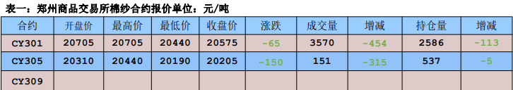 11月29日,CF01合約收盤價13210元/噸,CY01合約收盤價20575,CY09-CF09合約價差7365,處于中等位置,關注花紗套利機會。