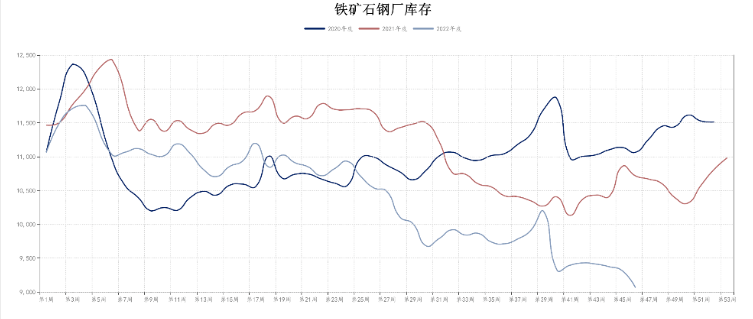 進口鐵礦港口庫存為13484.64萬噸,環比增加165.6萬噸,港口庫存小幅上升。45港口日均疏港量283.84萬噸,環比減少8.78萬噸。鋼廠進口庫存總量為9097.97萬噸,環比增加30.89萬噸,整體來看,鐵礦庫存持平。