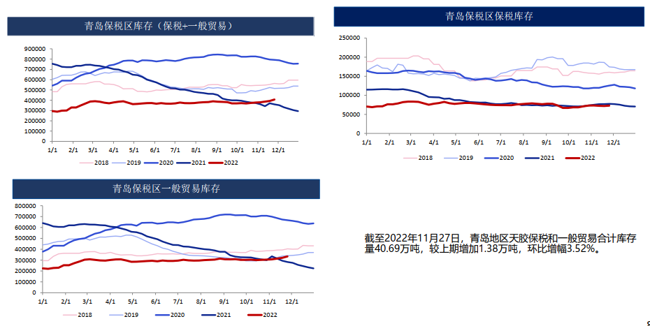 截至2022年11月27日,中國天然社會庫存100.01萬噸,較上期增加1.53萬噸,增幅1.55%。同比下降2.19萬噸,降幅2.14%。