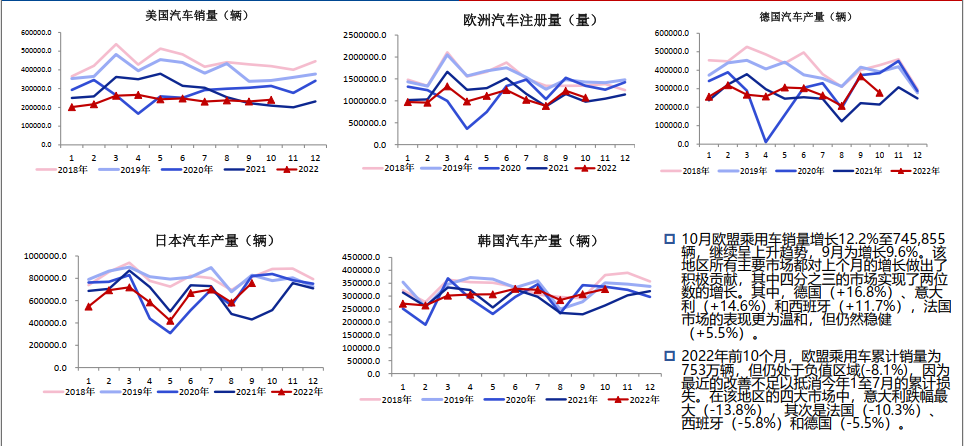 10月,我國汽車產銷分別達到259.9萬輛和250.5萬輛,環比下降2.7%和4%,同比增長11.1%和6.9%。1-10月,汽車產銷分別達到2224.2萬輛和2197.5萬輛,同比增長7.9%和4.6%,增速較1-9月分別擴大0.5和0.3個百分點。