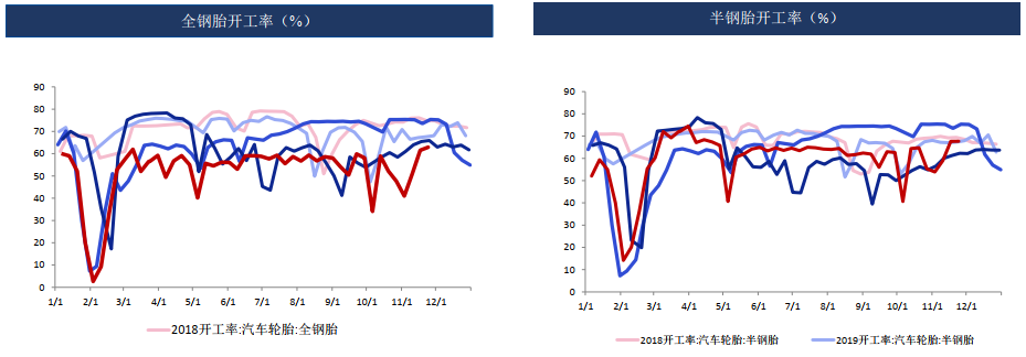 中國全鋼胎開工率為62.57%,環比-3.03%,同比-1.42%。周內山東地區部分企業響應當地防控要求存停減產現象,另有部分企業為控制庫存增速,降負運行,以上因素拖拽周內樣本企業開工下滑。
