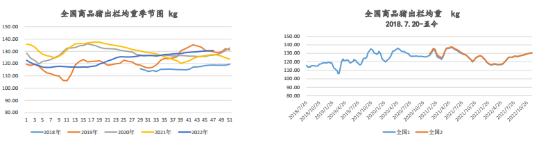 本周全國出欄平均體重為130.62公斤,較上周上調0.08公斤,環比增加0.06。盡管集團場降重出欄,但是散戶出欄體重較高,整體體重區間仍在高位。