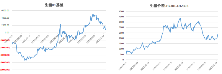 截至12月2日,01合約基差為835,較上周1930下滑1095點,受需求不及預期影響,高基差持續回落。當前生豬1-3價差收于2380,上周為1930,市場對3月供應存分歧,目前1-3價差仍在區間震蕩運行。