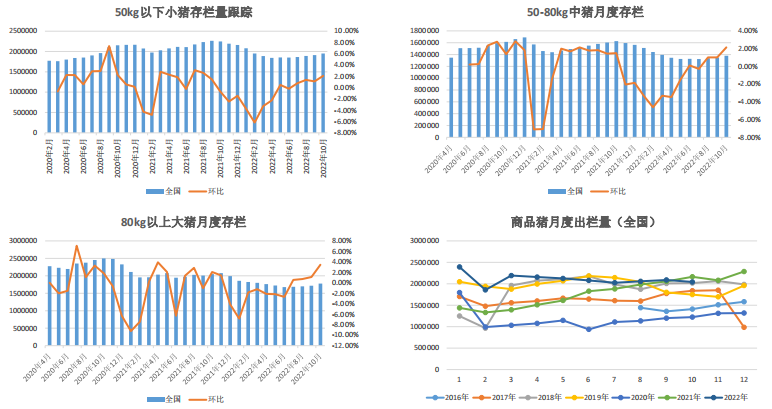 統計局數據顯示,2022年3季度出欄量為15443萬頭,環比下降9.27%,同比下降0.05%。