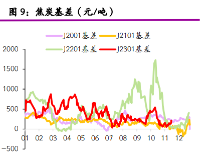 昨日焦煤盤面窄幅震蕩,截止日盤焦煤2305合約收盤價格為1809元/噸,較上一交易日收盤價格下跌6元/噸,跌幅為0.33%,持倉增加8561手。現貨方面,昨日呂梁孝義高硫主焦煤公路成交均價2210元/噸,較上期漲92元/噸;晉中高硫主焦線上競拍成交均價2191元/噸,較上期漲100元/噸;長治沁源低硫瘦主焦煤最新成交價2455-2460元/噸不等,對比上期高價上漲70元/噸。進口蒙煤方面,蒙煤外運逐漸好轉,口岸庫存出現回落,目前甘其毛都口岸蒙5#原煤報價在1600元/噸,蒙5#精煤1935元/噸。臨近年底,煤礦生產以保安全為主。下游延續補庫熱情,但受制于鋼廠利潤,原料煤上行空間有限。預計短期焦煤盤面呈現區間震蕩走勢。