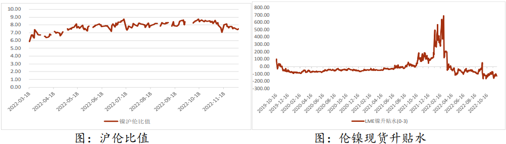 需求端來看,11月下旬于1月均預期減產,近期社會庫存因在途到貨有所回升。硫酸鎳價格持穩至回落,原料折扣系數下調,需求逐漸轉淡,鎳豆溶解經濟性缺乏需求弱。合金等需求也在價格上漲后有所轉弱。