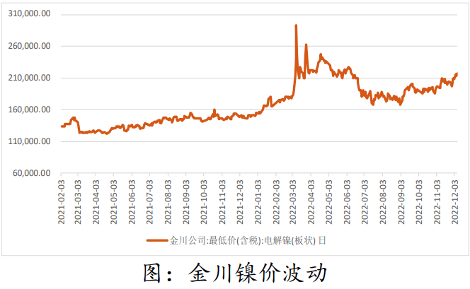 12月7日金川大板上海報價217550元/噸,桶裝小塊報價218550元/噸,電積鎳報價216550元/噸;金川大板金昌報價217000元/噸,桶裝小塊報價218000元/噸,電積鎳報價216000元/噸;金川大板佛山報價217850元/噸,較上一交易日上漲3000元/噸。現貨市場,12月7日,金川升水報價7500-8000元/噸,均價7750元/噸,價格較前一交易日上調350元/噸。