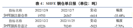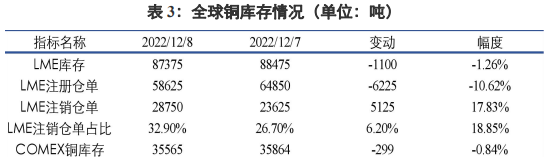 庫存方面,截至12月5日,SMM全國主流地區銅庫存環比上周五減少0.53萬噸至10.74萬噸,總庫存較去年同期的9.12萬噸高1.62萬噸。