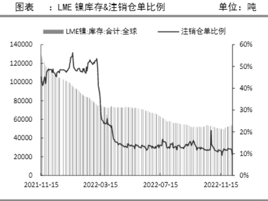 (1)最新LME鎳庫存5.25萬噸,較昨日減少1110噸,注銷倉單0.50萬噸,占比9.59%;庫存1172噸,較昨日減少30噸。LME庫存偏低位波動,或由于進口窗口關閉加之海外市場結構問題,近日整體表現底部累積,就庫存結構性來看,LME庫存中鎳板數量極少,預期后續庫存或難再現重現明顯去化或持續緩步累積。但需注意當前倉單庫存極低狀態仍將提供價格波動彈性。