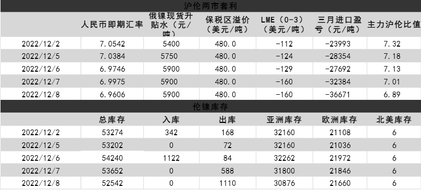 (2)現貨方面,SMM消息,金川鎳、俄鎳對10點30分2301合約分別升水7500-8000元/噸,升水5800-6000元/噸;現貨升水分別持平、持平;日內絕對價格延續高位運行,再創數月以來新高,進口維持較大幅度虧損,海外資源漸緊,金川挺價意愿強烈,金川鎳、俄鎳升水高位暫穩,現貨市場幾無成交。