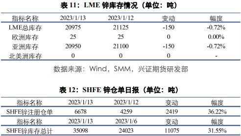 庫存方面,據SMM調研,截至1月 13 日,SMM 七地鋅錠庫存總量為 7.91 萬噸,較1 月9 日增加0.85 萬噸,較 1 月 6 日增加 1.19 萬噸。