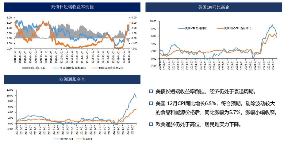 美國12月CPI同比增長6.5%,符合預期。剔除波動較大的食品和能源價格后,同比漲幅為5.7%,漲幅小幅收窄。通脹如預期下行,美聯儲加息放緩預期增強,需關注月底聯儲議息會議。