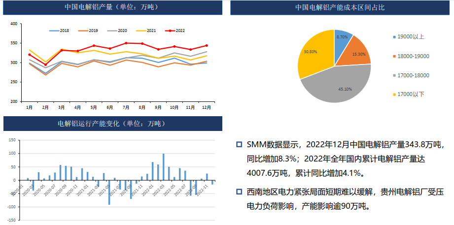 12月28日,貴州電網有限責任公司發布《關于對電解鋁企業進一步實施負荷管理有關要求的通知》。貴州地區于12月中旬發布限電通知,要求省內各電解鋁企業暫按70萬千瓦總規模調減,電解鋁壓負荷比例高達30%。12月28日,貴州限電再度升級,需再按30萬千瓦總規模退槽,預計影響20萬噸左右的產能。