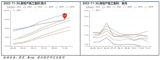 11月30日,房地產本年投資資金來源累計為136313.05億元,同比減少25.66%,單月為10832.93億元,較上個月減少3.12%,同比減少35.38%,已連續減少3月;房地產施工面積累計為896856.56萬平方米,同比減少6.54%,單月為7962.76萬平方米,較上個月減少20.17%,同比減少52.59%,已連續減少3月;房地產竣工面積累計為55708.82萬平方米,同比減少18.97%,單月為9144.24萬平方米,較上個月增加60.83%,同比減少20.23%,已連續增加3月;房地產銷售面積累計為121250.08萬平方米,同比減少23.32%,單月為10070.79萬平方米,較上個月增加3.21%,同比減少33.26%。
