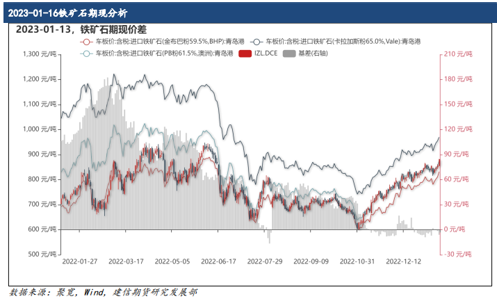 1月12日晚,美國12月CPI數據公布,同比6.5%,預期6.5%,前值7.1%,核心CPI同比5.7%,預期5.7%,前值6%。由于通脹降溫,美元指數于12日晚較大幅下降,鐵礦石價格有所反彈。另外基本面數據顯示鋼廠鐵礦石補庫持續。