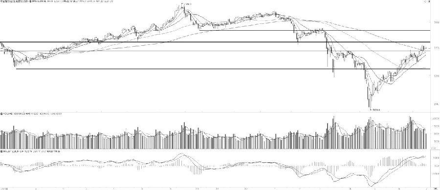 6月23日至28日,IF加權四連陽加速上漲后,漲勢放緩并形成陰陽相間的格局,但價格重心上移的趨勢未變。均線方面,MA5、MA10、MA20與MA60繼續保持多頭排列,繼MA5與MA120形成金叉后,MA10與MA120亦形成金叉,均線的修復繼續由短期向中長期發散。指標方面,MACD紅柱連續三日收窄,但DIF與DEA續創年內新高,表明IF加權短期上漲的動能猶在。整體看,IF加權反彈趨勢未改,預計短線調整結束后將再創新高,并測試4500—4600點壓力區間。