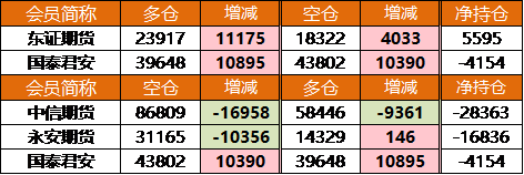 另外,光大期貨、平安期貨、中輝期貨、華聞期貨凈持倉今日由多轉空。