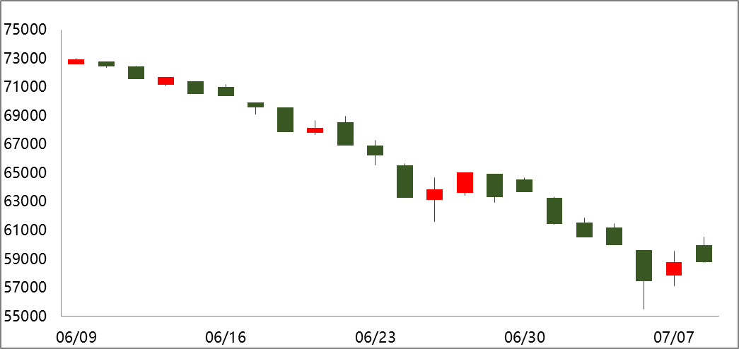 滬銅合約為CU2208,上周收盤價下跌4.33%至58960元/噸。