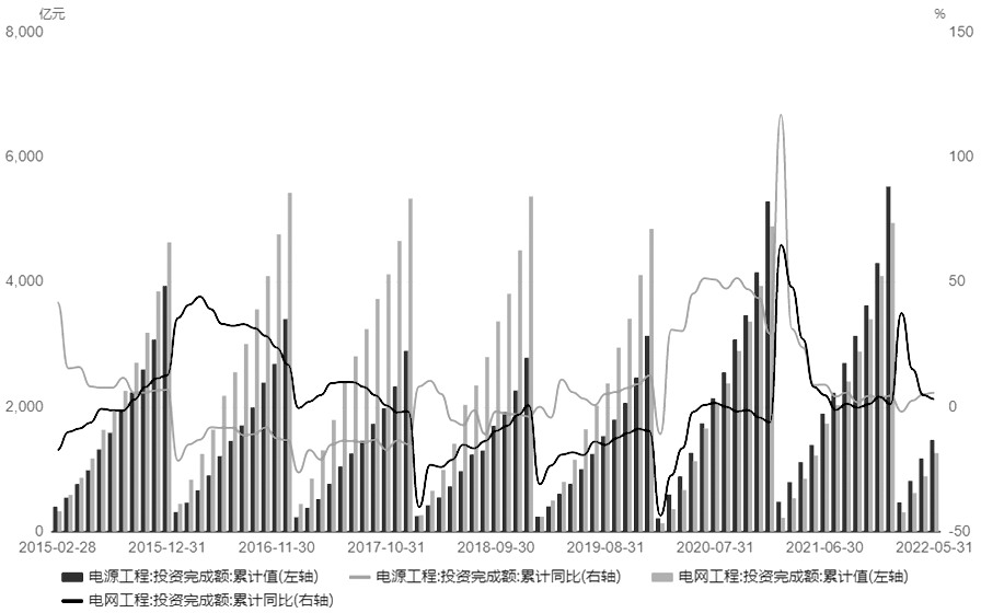圖為全國電源及電網投資完成額