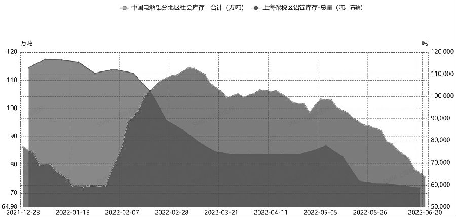圖為國內電解鋁社會庫存及保稅區庫存