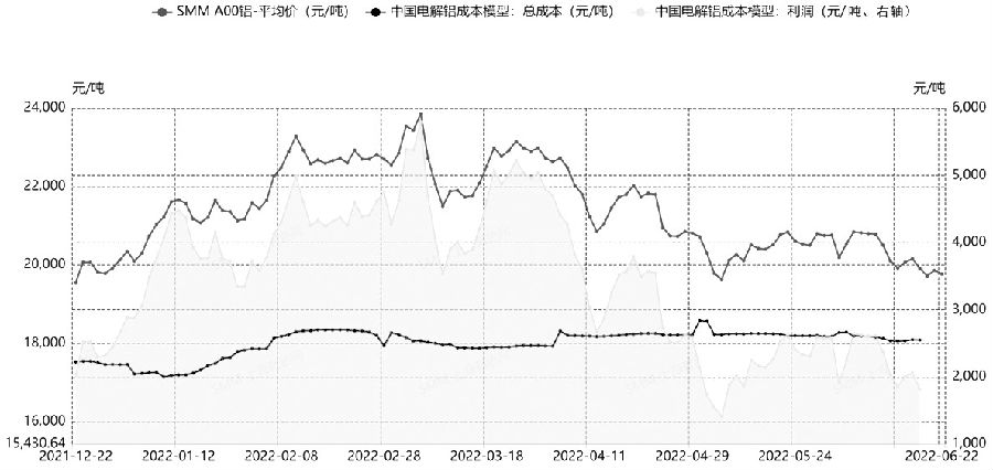 圖為國內電解鋁企業成本和利潤