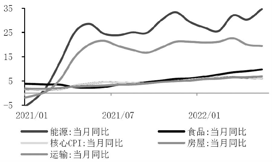 宏觀來看,當前歐美各國深陷嚴重的通脹危機。自2021年二季度開始,歐美出現了嚴重的供需缺口,造成商品快速漲價并由此引發了一輪由供給側沖擊帶來的全球性通貨膨脹。而在供需矛盾尚未完全緩解之際,今年2月俄烏沖突爆發又使得國際能源與糧食價格迅速上漲,疊加疫情后歐美服務業復蘇帶來的服務、出行與租金上漲,造成了新一輪全球性的商品價格上漲。美國CPI同比沖高至8%以上,并持續創下1980年以來新高。