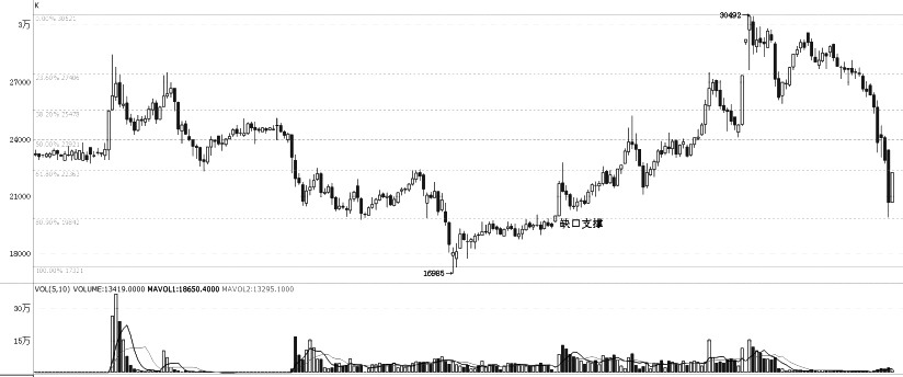 棉紗期貨從高位下跌,特別是從4月至今的調整,已經連續16周收陰線。上周,周跌幅最大進入空頭加速過程。測量下跌幅度可知,本輪空頭完成前期牛市進程的80%調整空間,不再屬于正常的牛市調整,而是轉勢概念。另外,上周最低位在19924元/噸,并沒有封閉2020年10月9日啟動的缺口。棉紗相比于滬銅等雖具備下方技術支撐,但對反彈的力度持保守態度。因此,可將棉紗此輪行情定義為超跌反彈,高度看至23000元/噸附近。(開元貿易 顧敏忠)