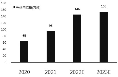 圖為國內光伏用鋁量