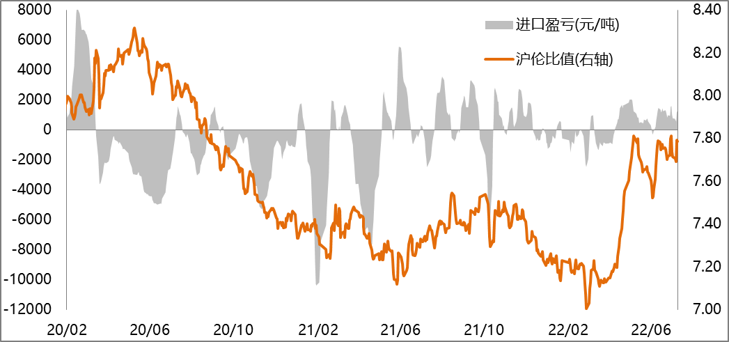 截止2022年7月15日當周平均進口盈利1164元/噸,進口有利潤。