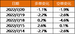 具體看,在7月11日-7月19日期間其凈持倉與價格間整體呈正相關性,但今日價格上漲,凈空單持倉增加。