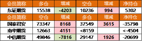 就多單而言,僅東證期貨1家席位減倉超4千手,無席位增倉超4千手。