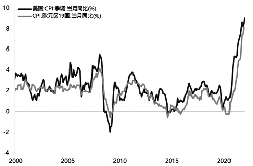 圖為美國和歐元區19國CPI