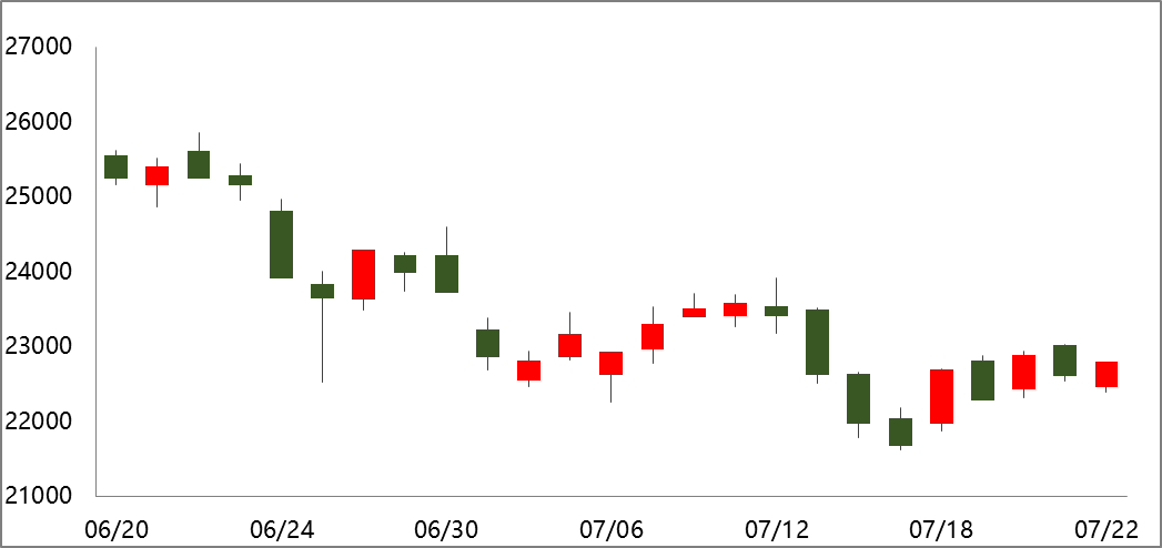 截止2022年7月22日當周滬倫比值平均為7.69,上周為7.38;