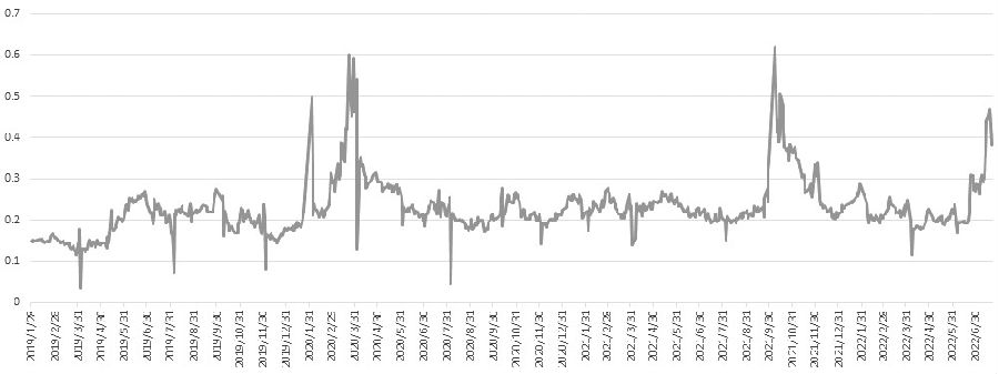 圖為棉花期權加權隱含波動率