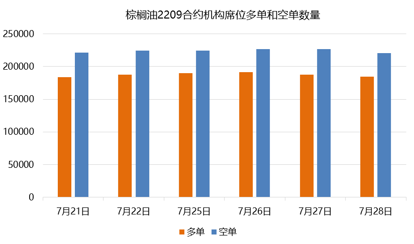 棕櫚油2209合約前20席位期貨公司持倉數據顯示,今日多單倉位減少1850手至184832手,空單倉位減少4349手至220558手,凈持倉為空單35726手。