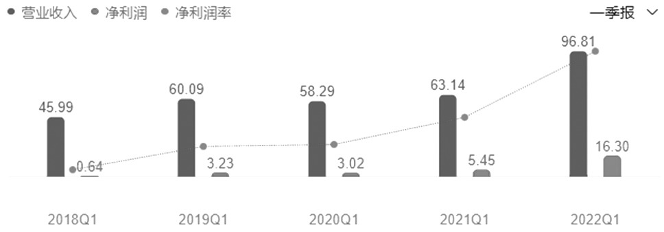 圖為2018—2022年第一季度開灤股份利潤情況