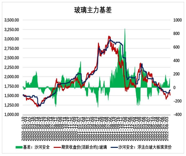 2、基差:浮法玻璃現貨基準地河北沙河安全現貨1651元/噸,FG2301收盤價為1517元/噸,基差為134元,期貨貼水現貨。