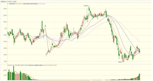 本周(8月15日-8月19日)合約在震蕩中完成換月,近月合約2209報收8430元/噸,周跌幅4.53%,下跌400元/噸,開盤價8770元/噸,最低價8314元/噸,最高價8929元/噸。本周成交量195.1萬手,持倉量95150手,倉位變化減倉13.1萬手。