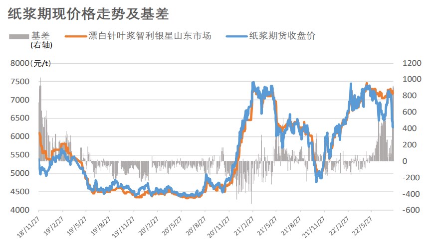 需求端原紙市場近期需求整體變動有限,行業傳統旺季即將到來,需求預期好轉,但主力合約短時間內上漲回調力度不佳,預計本周漿價弱勢震蕩概率較大。