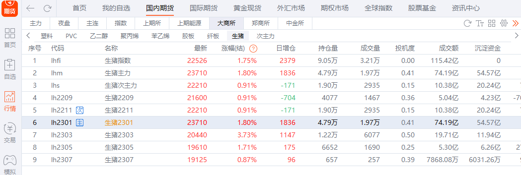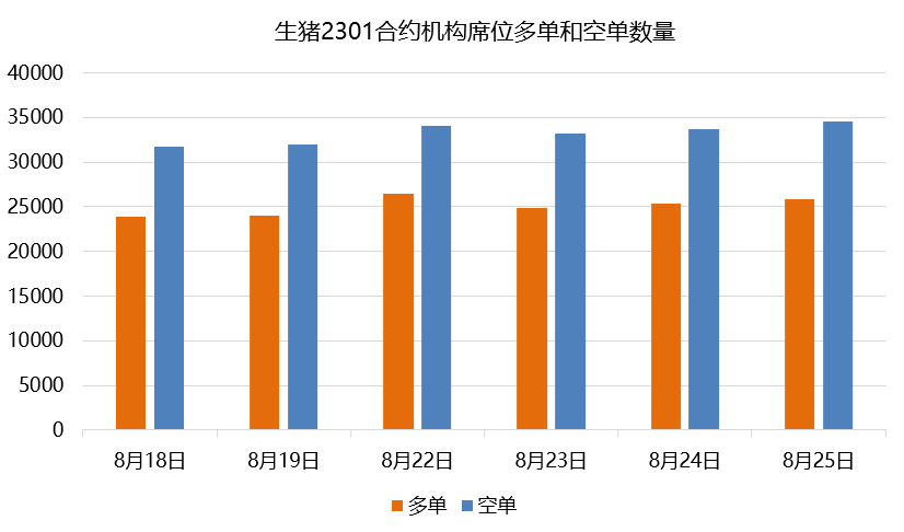生豬2301合約前20席位期貨公司持倉數據顯示,今日多單倉位增加577手至25828手,空單倉位增加890手至34518手,凈持倉為空單8690手。